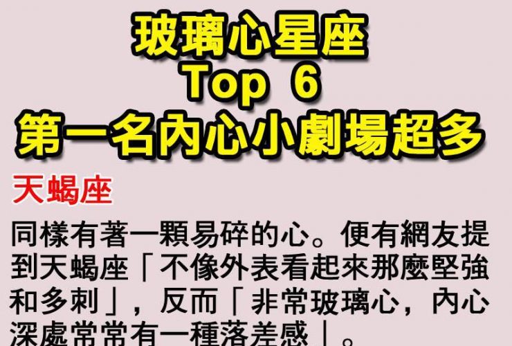 玻璃心星座Top 6出爐,第一名內心小劇場超多!