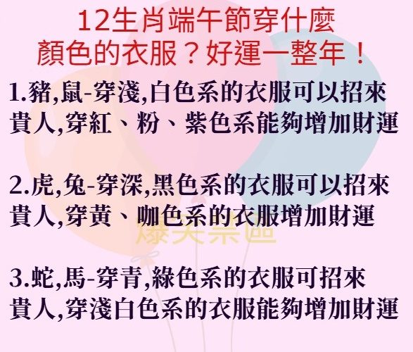 12生肖端午節穿什麼顏色的衣服?好運一整年!