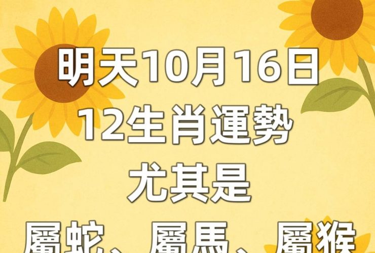 明天10月16日12生肖運勢 尤其是屬蛇、屬馬、屬猴要注意!