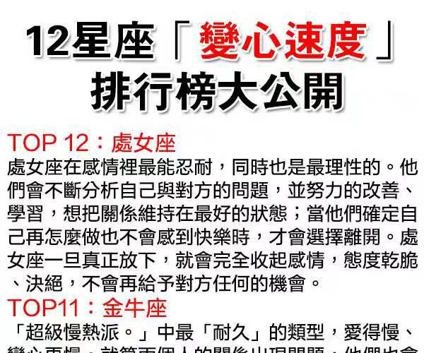 12 星座「變心速度」排行榜大公開!