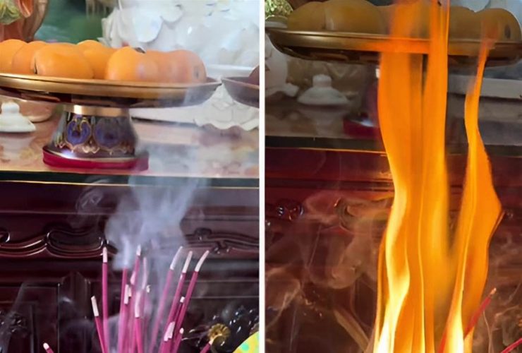 女子「給財神上香」,結果香竟從中間燒起來!網驚:這可是斷頭香啊