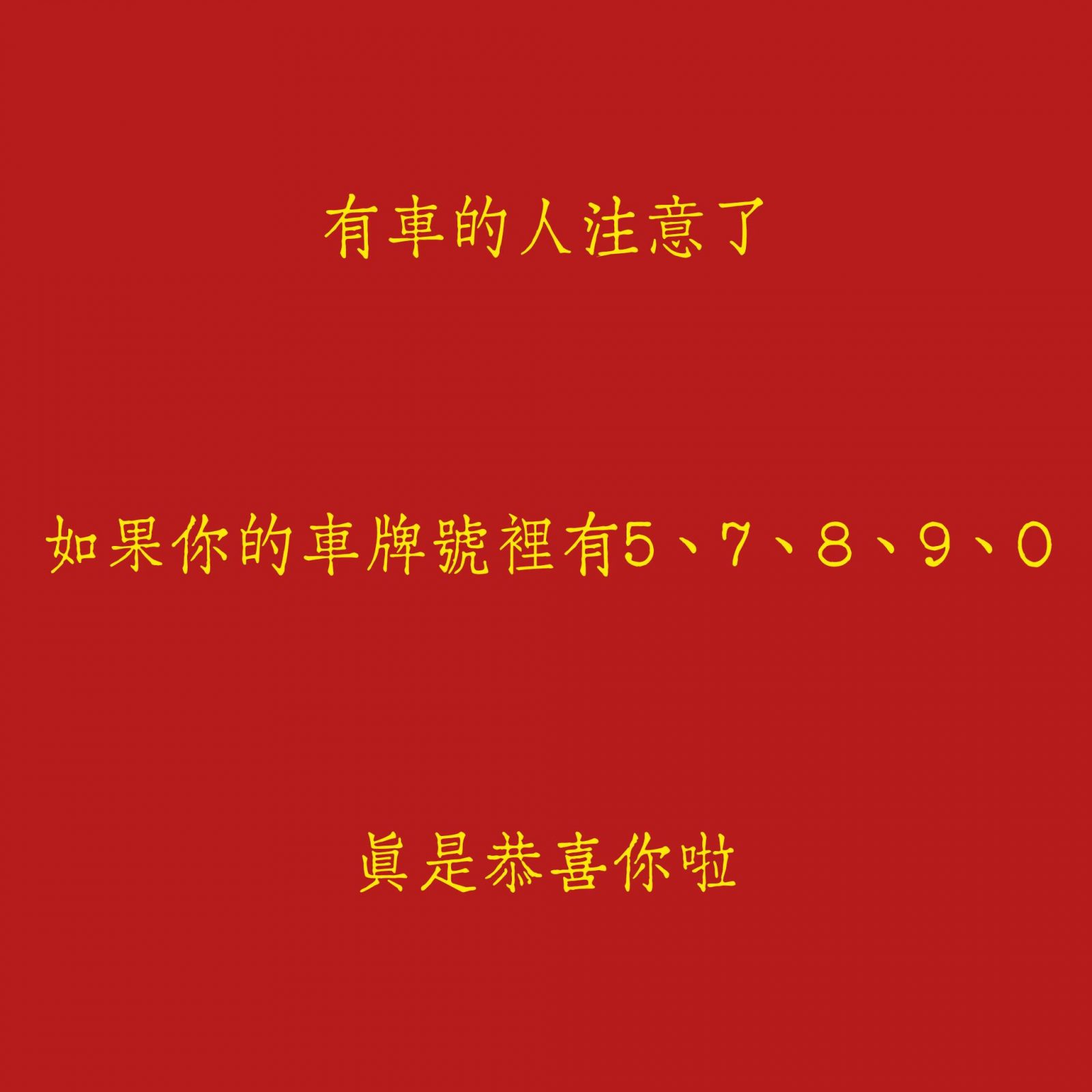 如果你的車牌中有兩個以上這些數字,恭喜你,你的行車能量是加乘的!