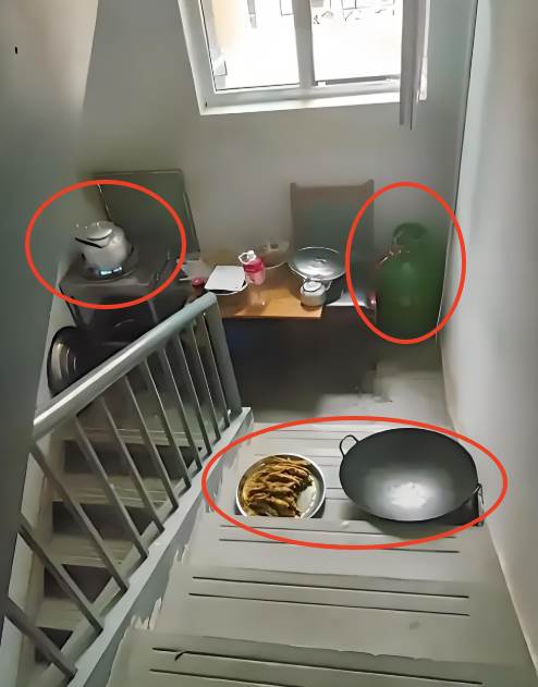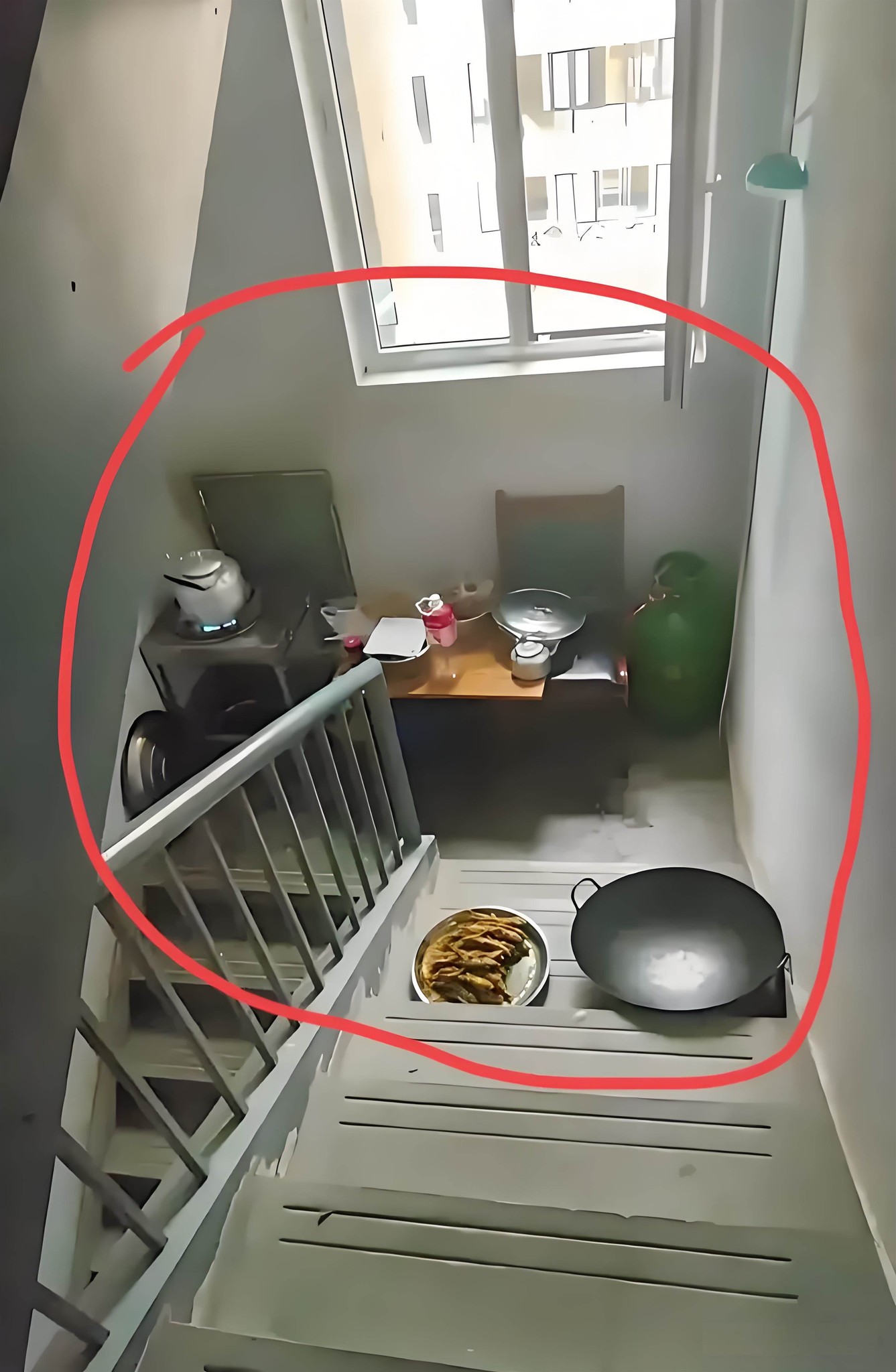 我壓著火問他:「李哥,你怎麼在樓道開伙啊?」