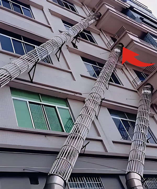 住在5樓的張阿姨拉開窗簾,眼前的景象讓她瞬間睡意全無——樓體外牆上赫然多出了一條銀灰色的金屬滑梯,從6樓窗戶一直延伸到一樓綠化帶。