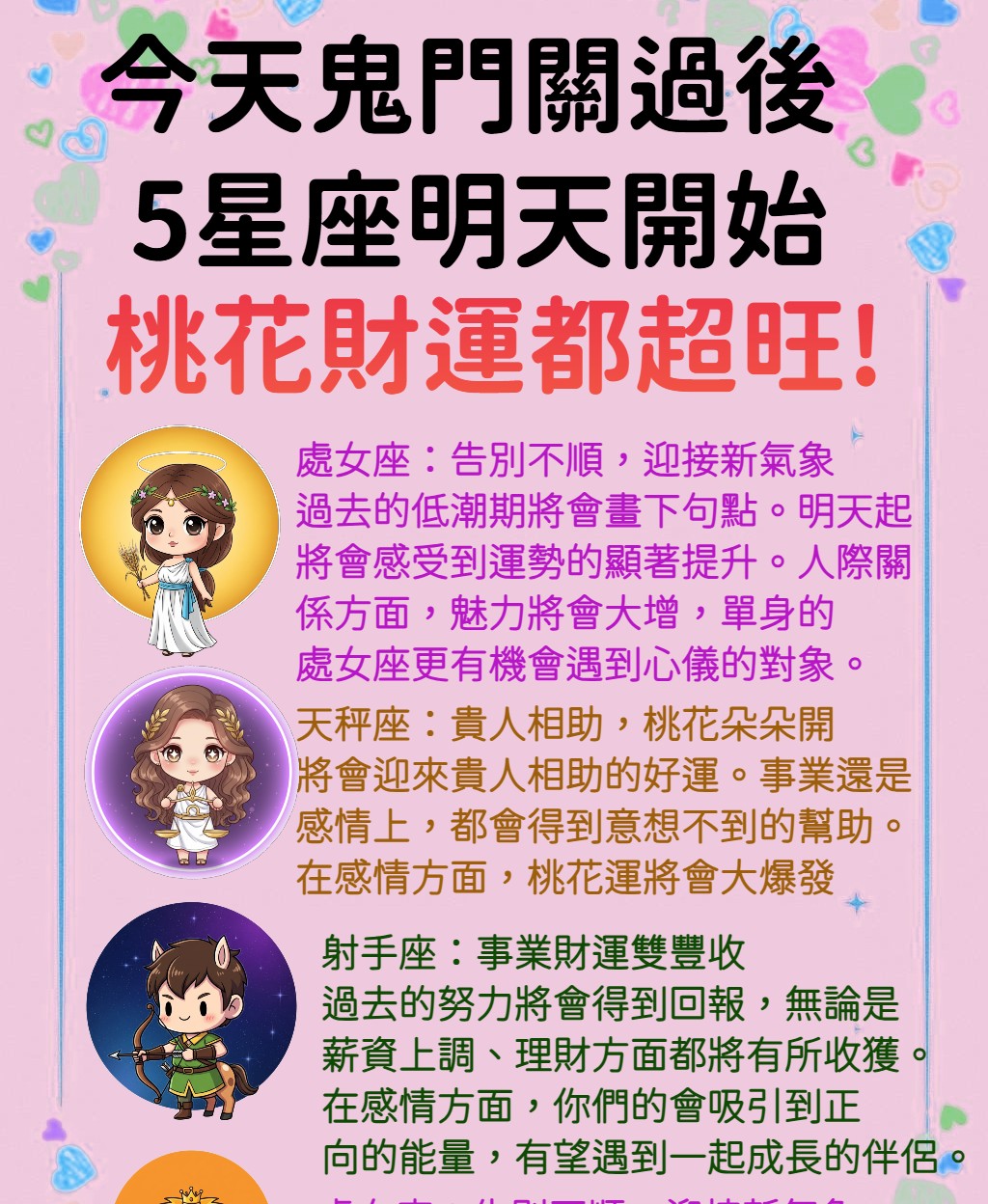 以下五個星座的朋友們,請準備好迎接好運!鬼門關一過,你們的桃花和財運都將會超旺!