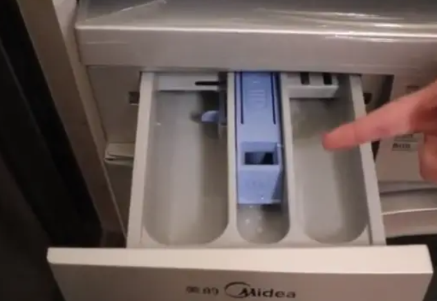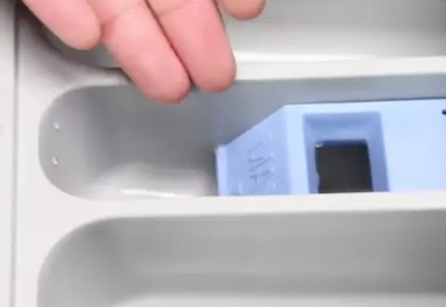 這是放洗衣精或洗衣粉的地方。洗衣機進入主洗階段時,水會自動流經這格,把清潔劑沖進去,開始主要的洗滌程序。