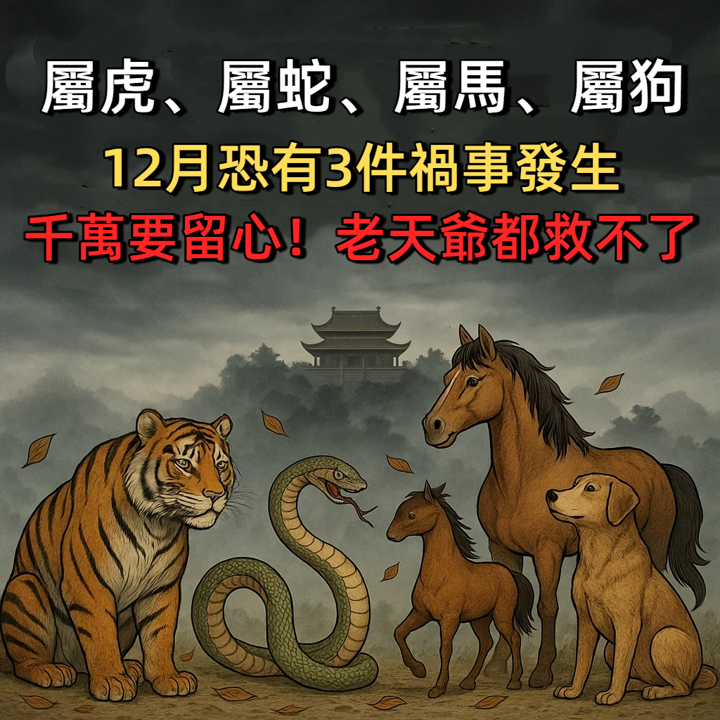 年底將近,12月的能量波動大,不少生肖容易在這段期間遇到壓力、衝突或破財狀況。其中屬虎、屬蛇、屬馬、屬狗特別需要多加注意,因為在流月運勢中出現了「禍事易動」的跡象。