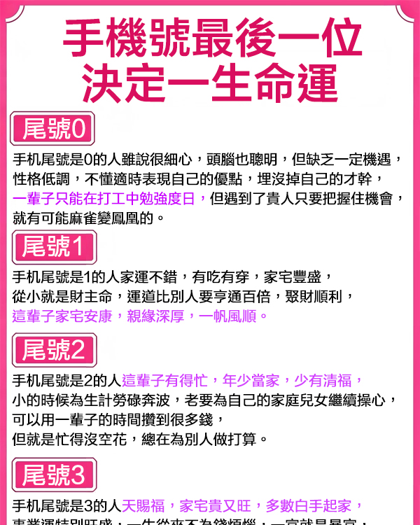 從你手機號最後一位,看你這一生怎麼過,太準了!