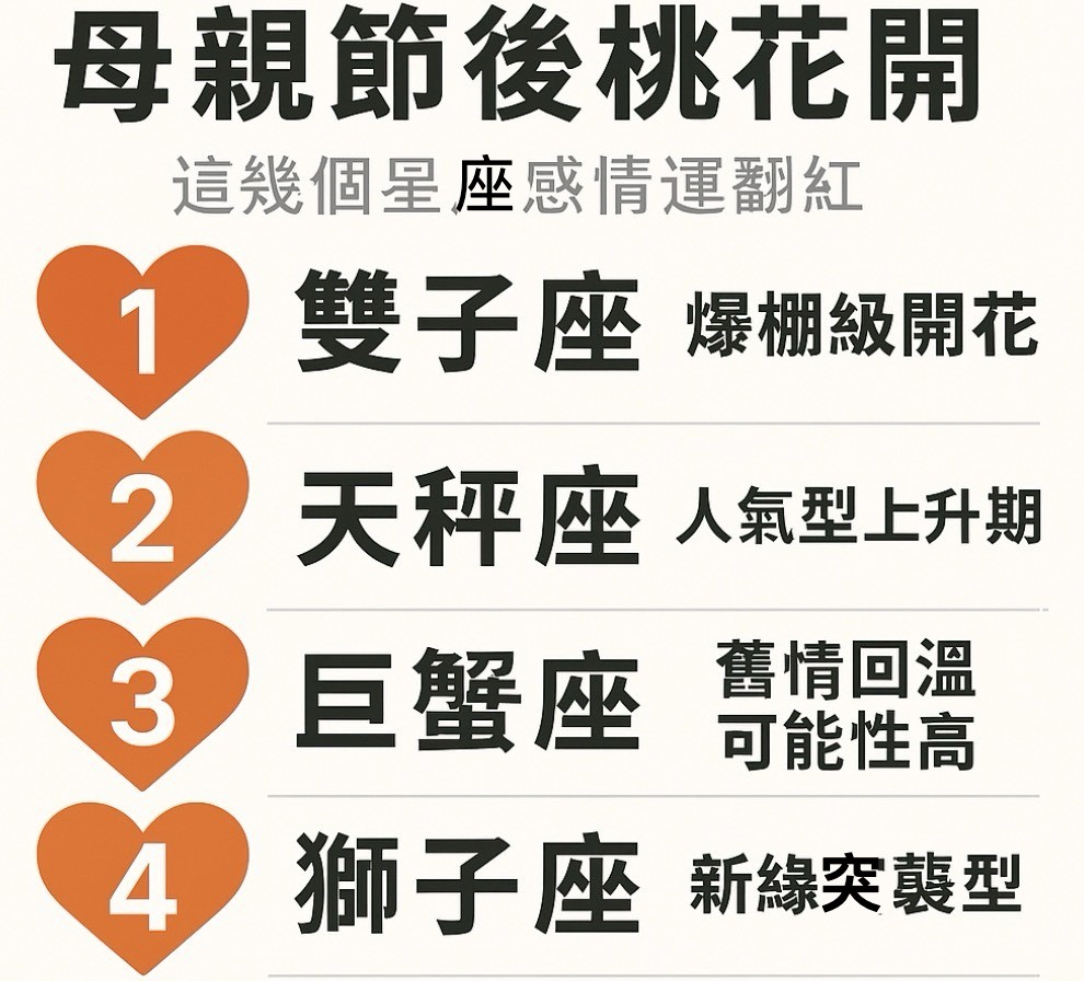 社交高手天秤本來就不缺桃花,母親節後更是自帶光芒,容易被身邊的人注意到。不論是新歡或是前任,都可能在這段時間展開主動接觸。