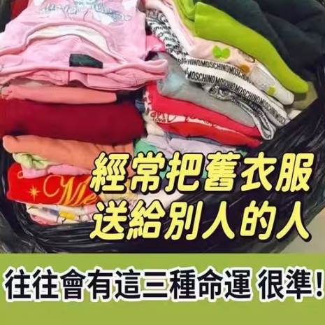 留下徒佔空間,自己無意再穿,丟掉卻又覺得可惜,于是便轉手送給了別人。現實生活中,若是經常把自己的舊衣服送給別人,大多會是這3種命運,看看你是哪一種。