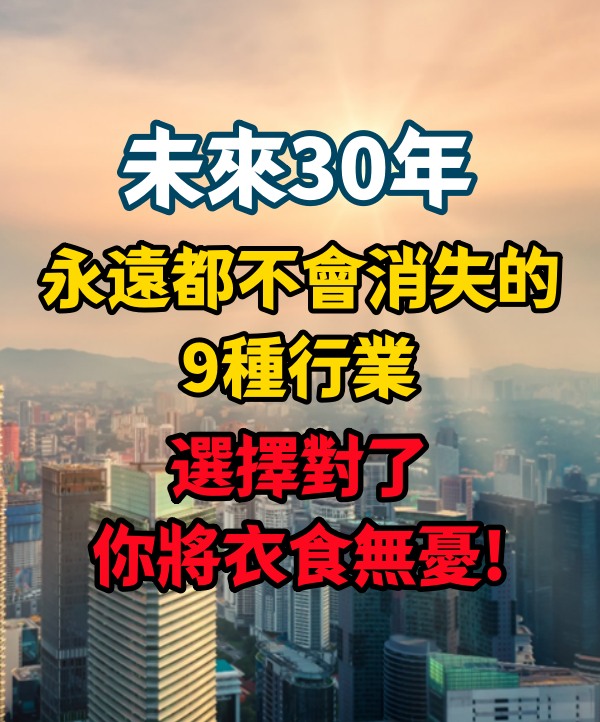 專家分析後發現,未來30年,以下9種行業幾乎不可能消失,選對跑道的人,真的可以做到「衣食無憂」。